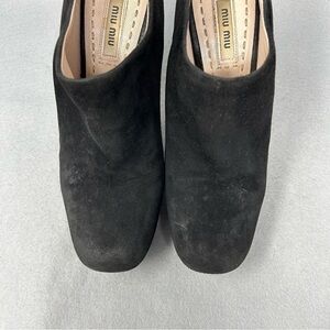Miu Miu Black suede chunky high heel pumps booties shoes, size 37/US 7