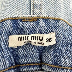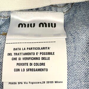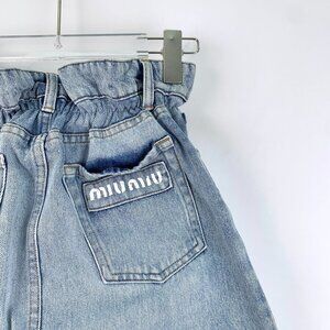 Miu Miu Blue Denim Skirt With Frayed Hem & Logo Pocket Size 36 XS 100% Cotton Ma