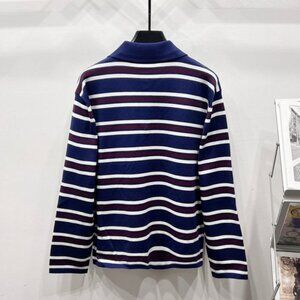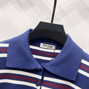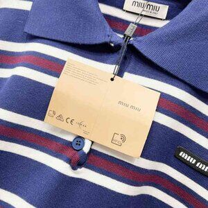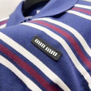Miu Miu Blue and White Striped Long Sleeve Polo