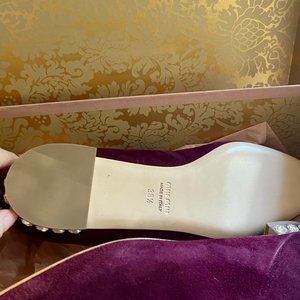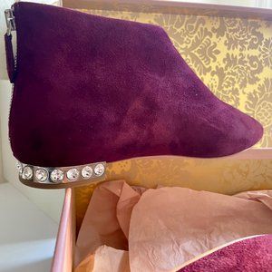 Brand new still in the box. Heel measures approximately 15mm/ 0.5 inches. Black suede. Zip fastening along back- Fits true to size, take your normal size. Ankle boot. Low heel embellished with signature crystals. Color: Burgundy Size 38.5