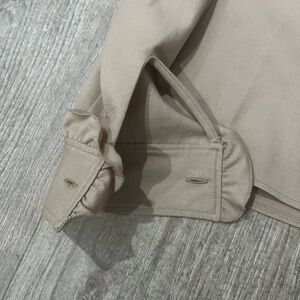 Please note in pictures one sleeve cuff is missing button, and other sleeve has small holes. Both of these are very easy fixes to bring to seamstress.