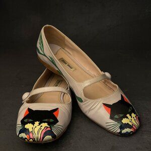 Miu Miu Cat Print Mary Jane Ballet Flats