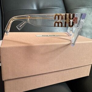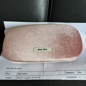 Miu Miu Crystal 2AZ1O1 Glasses brand new. I bought these and had my prescription put in them, but unfortunately I just didn’t like the style on myself and they fit me a bit snug. They are sooo cute and trendy! The original lenses are included in the box, with the miu miu logo on them. Comes with pink velvet case and box.