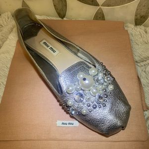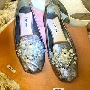 Miu Miu beautiful and comfortable embellished pearl and crystal leather loafers.