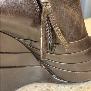 Miu Miu Dark Brown Leather Wedge Bootie Pumps 4.5" Heel Size 38 1/2 (8.5)