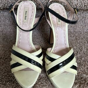 Miu Miu Elegant Black and Cream Women's Patent Leather Platform Heels