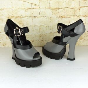 Miu Miu Fall 2013 Runway Platform Heels Women 40 Gray Black Patent Mary Jane Shoes