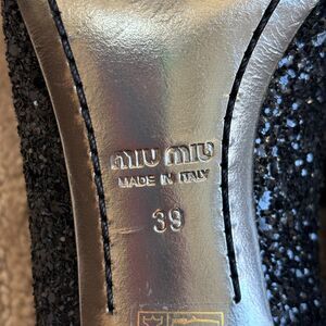 Miu Miu Glitter-Covered Leather Peep-Toe Oxfords Pumps Women's 39 Black Italy