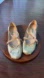 These Miu Miu flats feature a luxurious gold finish and a charming bow detail, offering a blend of elegance and comfort. The rounded toe design and flexible construction make them perfect for both casual and dressy occasions.
