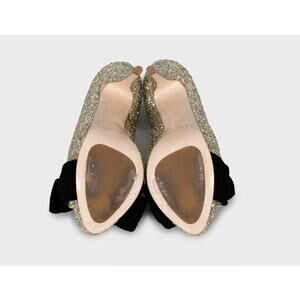 The elegant velvet bow detail adds a touch of sophistication, making them perfect for any special occasion. These heels are in very good condition with only light wear.