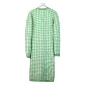 This green checkered cardigan jacket offers a stylish and cozy look with pearl accents and pocket details. New with tags.