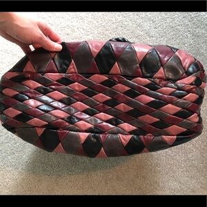 Authentic Miu Miu Harlequin Hobo Bag. Gently used, some light signs of wear - please see all pictures. Multicolored Leather Woven Pattern. Single Braided Handle. Adjustable Long Shoulder Strap with Gold Tone Hardware. Large interior lined with Black Satin. Interior zipper pouch and Gold Miu Miu plate. Size: 16"L x 15"H x 4.5"W. Original Dust Bag Included.