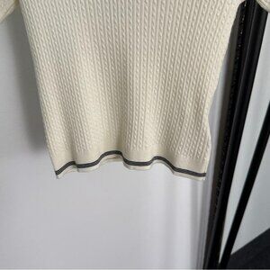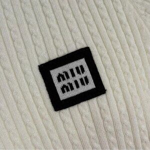 Chic Miu Miu knit top with short sleeves. Features a stylish ivory hue. Ideal for versatile styling.