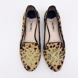 Miu Miu Leopard Print Crest Smoking Flat Calf Hair Size 36 / 6