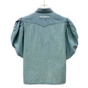 Miu Miu Light Blue Bubble Sleeve Cotton Denim Shirt