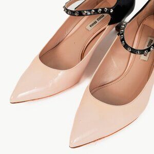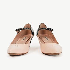Miu Miu Light Pink & Black Bicolor Studded Mary Janes