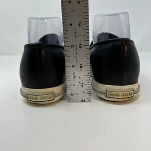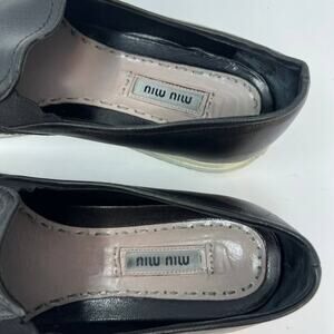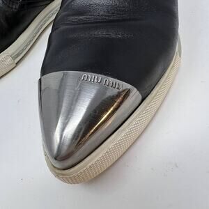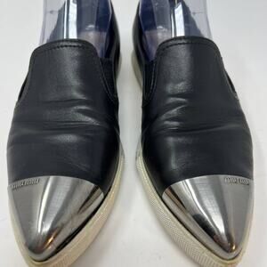 Miu Miu Loafers Women's 38.5 Black Leather Silver Toe Cap Slip On Luxury Shoes