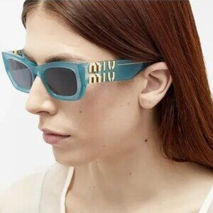 Miu Miu MU09WS 19L09T BRAND NEW Sunglasses Ivy Opal Dark Grey Rectangle Women