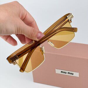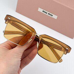 Miu Miu MU10ZS 15T0B7 BRAND NEW Sunglasses Caramel Trasparent Yelllow Square Unisex