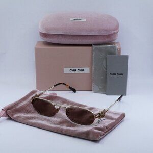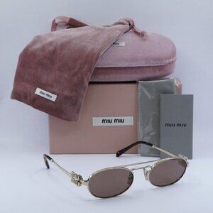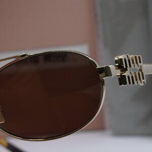 Miu Miu MU54ZS ZVN70D Oval Sunglasses - Gold/Brown