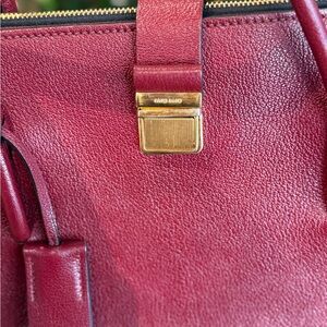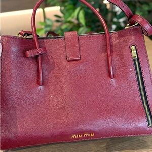 Miu Miu 2 Way Madras Leather bag with suede interior. Shows some wear but has authentic strap for crossbody wear. Wonderful bag, just making more space. DEEP red color. Retails for $2,040.