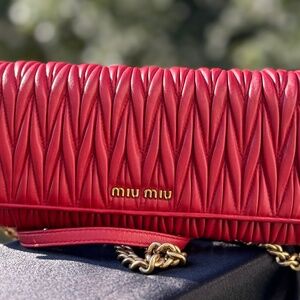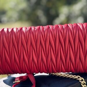 Miu Miu Matelassé Leather Chain Shoulder Bag – Red with COA