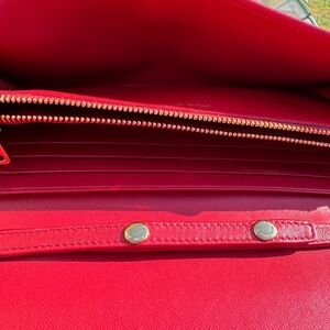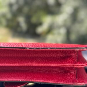 A true Miu Miu signature, this bag is crafted in supple red leather with the brand’s iconic matelassé quilting — a design that’s instantly recognizable and highly coveted. The structured silhouette, luxe gold-tone chain strap, and compact size make it a versatile piece that transitions seamlessly from day to night.