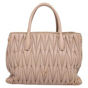Miu Miu Matelasse Hand Bag Leather 2way Pink Gold Auth