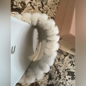 These stylish flats are made of soft white shearling. Brand new with originals box. White leather inside.