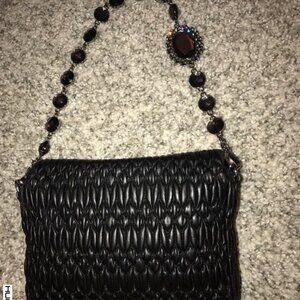 Miu Miu Matelasse Nappa Leather Crystal Flap Clutch Black