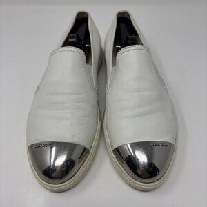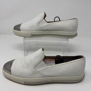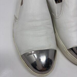 Miu Miu Metal Cap Toe Slip-On Sneakers Womens 38 1/2 - 8.5 US White Leather