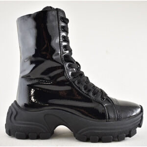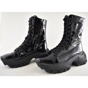 Miu Miu Naplak Tech Black Patent Leather Platform Lace Up Combat Moto Boot 36.5