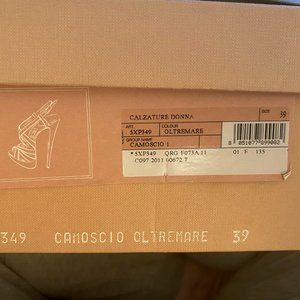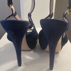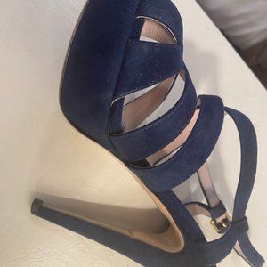 Elegant navy blue sandals with strappy design. Features adjustable ankle strap. Perfect for stylish outings.