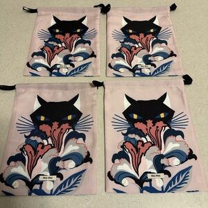 This 9.25x7 Miu Miu mini bag showcases a captivating cat face design, featuring pointed ears and angular eyes in a striking navy blue and coral color scheme. The artistic geometric pattern adds a unique flair, making it a standout accessory for any occasion.