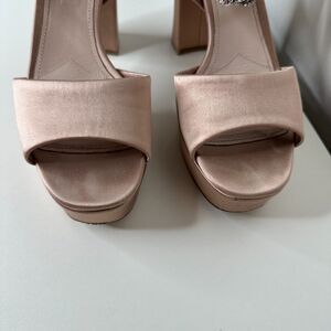 Miu Miu Nude Calzature Donna Satin Crystal Ankle Strap Platform Block Heels 10.5
