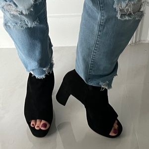 Miu Miu Open Toe Black Suede Block Heel Ankle Booties Boots
