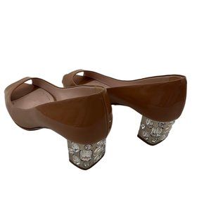 Miu Miu Patent Leather, Open Toe, Crystal Embellished, Caramel Pumps Size 35 (US Size 4.5)