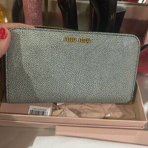 Miu Miu Pebbled Gray Leather Women's Full size Zip Around Wallet!!