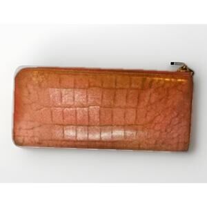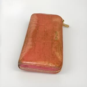 Miu Miu Pink Croc Embossed Leather Zip Around Wallet Authentic