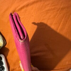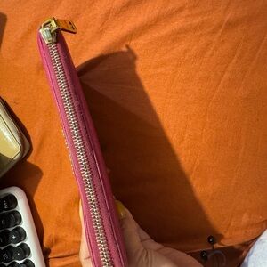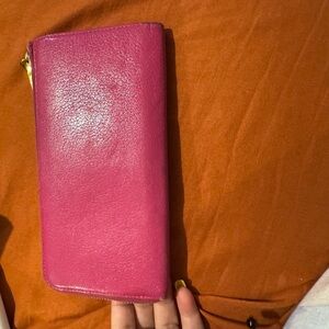 Chic pink leather wallet by Miu Miu. Features a sleek design with a gold zipper.