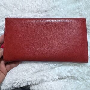 This Miu Miu clutch showcases a chic envelope-style design in a vibrant pink leather, exuding elegance and modernity. The sleek and minimalist aesthetic is complemented by the iconic Miu Miu logo on the front, making it a standout accessory for any occasion. Its refined craftsmanship and luxurious material ensure it remains a timeless addition to your collection.