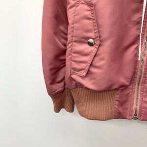 Miu Miu Pink Long-Sleeved Bomber Jacket W/ White Attached Hoodie & Zipper Closur