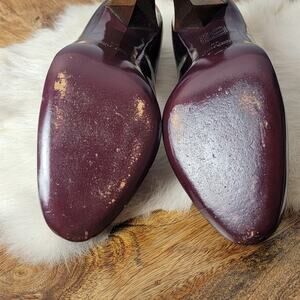 Gently loved, with minimal scuffs and very light scratches. No major flaws! Soles in great shape for used condition. Unique "exposed" wood split style heel.