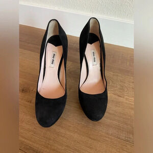 Miu Miu Prada Black Suede Glitter Platform Pumps Black Size EU42/US 11.5