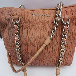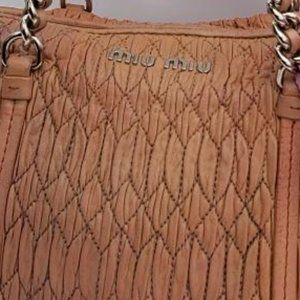 Miu Miu Prada Metelasse arcadie nappa Leather double chain purse beige pink tote
