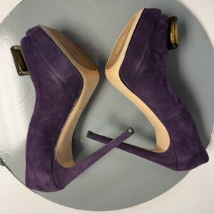 miu miu purple/plum suede crystal embellished peep toe shoes