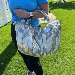 Miu Miu Purse Metallic Silver Bronze Patchwork Hobo ZipTwo-Way-Crossbody Purse