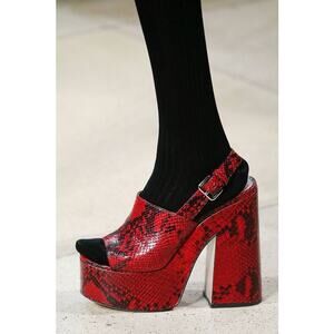 Miu Miu Red Black Snakeskin Embossed Leather Platform Block Heel Sandals 40