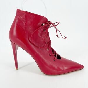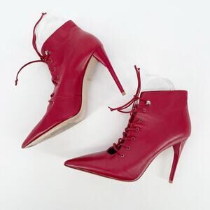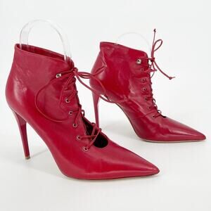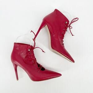 Miu Miu Red Leather Pointed Toe Lace Up Heeled Ankle Boot Bootie size IT 37