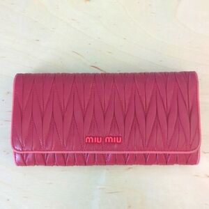 Elevate your style with the Miu Miu red quilted leather wallet. Perfect for any occasion, this elegant accessory adds a touch of luxury to your ensemble. very light wear